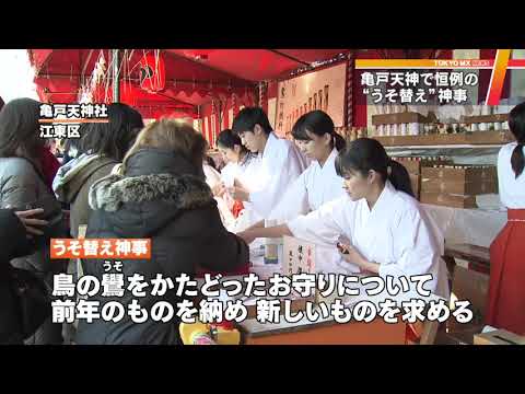 鳥の鷽にあやかり「悪いことをうそ(鷽→嘘)にして、良いことに取り替える(→鳥・替える)」との願いを込めて、江戸時代から続けられてきました。