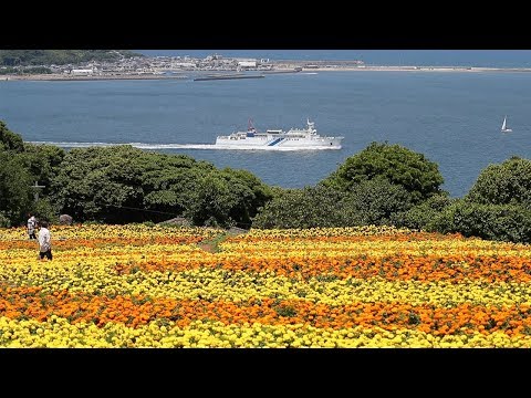 福岡でも屈指の菜の花・桜・コスモス・水仙の名所で、満開のころは一年で最も混雑する。