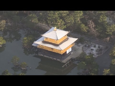 強い寒気の影響で冬型の気圧配置が強まった6日、京都市内では雪やみぞれが断続的に降り、金閣寺(鹿苑寺、同市北区)が、この冬初めて雪化粧した。